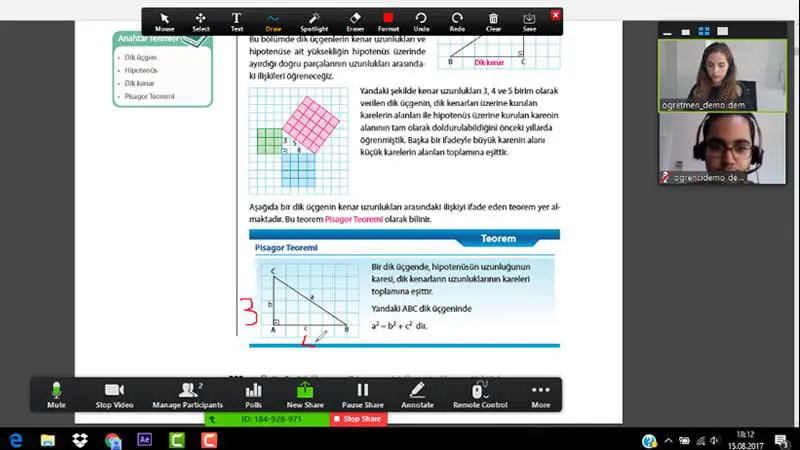 sunabilir ve daha interaktif bir ders olması için de içerikler arasında öğrencilere soru yöneltebilir. Ayrıca eğitmen/öğretmen sanal bir tahta sayesinde ders ve konuyla ilgili istediği her şeyi tahtaya yazarak