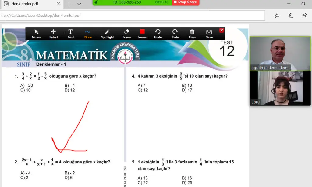 türlü dokümanı, videoyu vb. öğrencileriyle paylaşabilir. Öğretmen öğrencilerine sorular sorabilir; sınav,