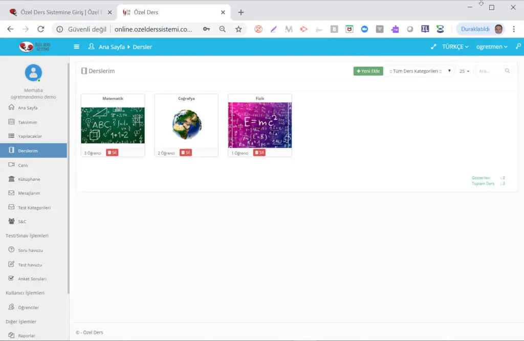 ders öğretmenlerinin ders verebileceği Özel Ders Sistemini geliştirdik.