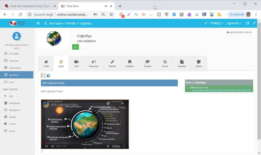 Öğrenciye sunulan içeriklerde doküman ve videolar paylaşabilir öğrencilere dersleri videolu eğitim olarak