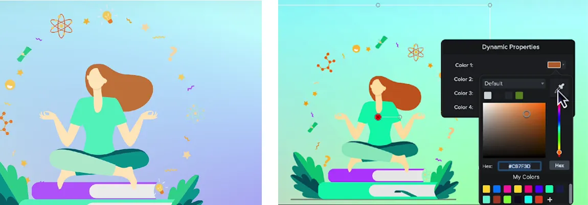 Ayrıca Lottie dosyaları olarak adlandırılan dinamik hareket grafiğini özelleştirme yeteneği ile tüm hareketli grafiklerde değişiklikler yapmak mümkün.