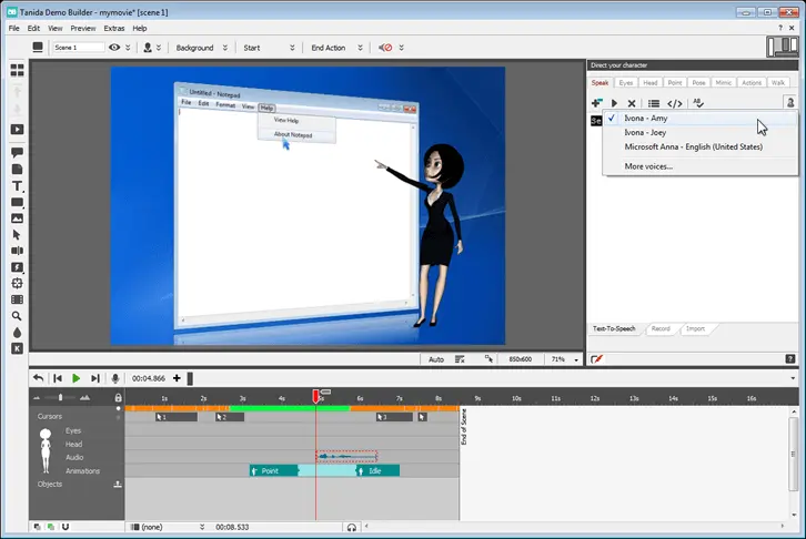 Diğer bir harika özelliği ise seslendirme kolaylığı. Diyaloglarınızı kendiniz seslendirebileceğiniz ya da uygulanın sizin için seslendirmesini tercih edebilir. İkinci seçenek için yapmanız gereken tek şey diyaloglarınızı uygulamada yazıya dökmek.